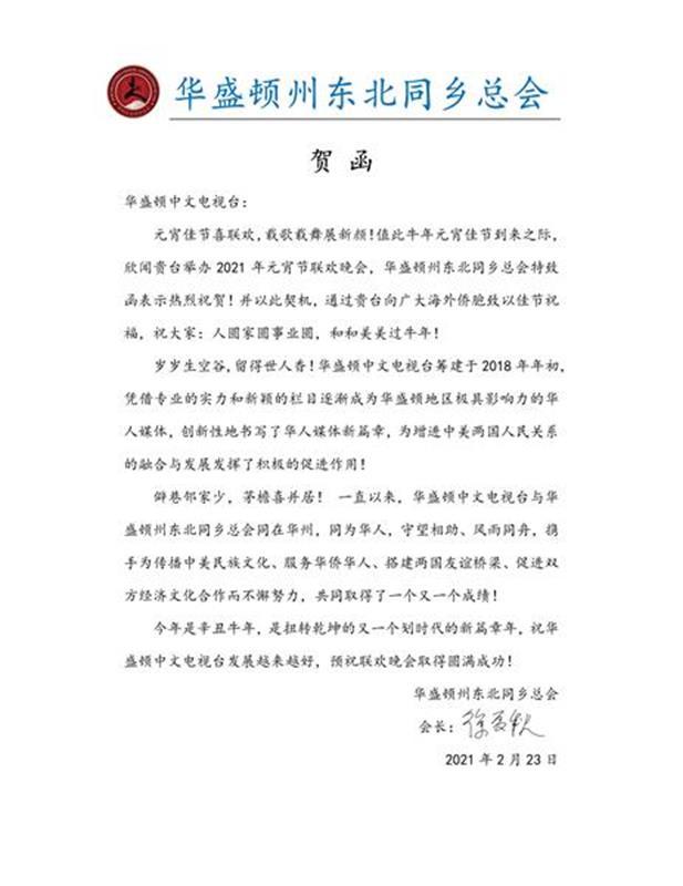 二. 华盛顿中文电视台2021 元宵节联欢晚会祝贺视频: