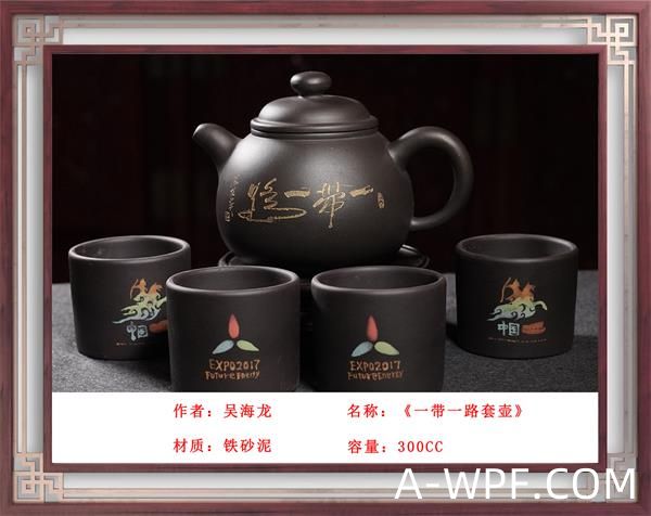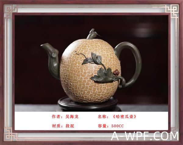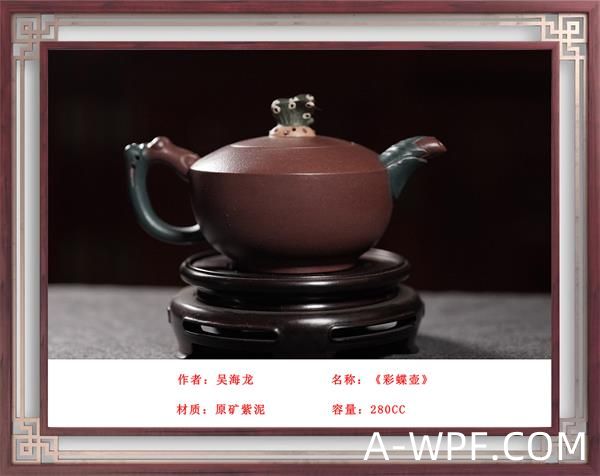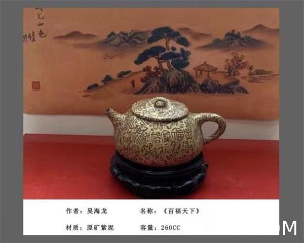 宜兴有天土,吴门出陶人。继陶瓷、紫砂已成国艺。一盈把握,诸子尽在一掬之间,上兑庄老之露、下泡儒佛之泉。禅意不看红尘事,一捧紫砂释天机。宜兴吴门,百年传承。吴氏陶艺历吴余清及吴门第五代传人吴海龙,早慧,幼随父习艺,自幼薰艺家风,承前启后,把吴氏绝艺发扬光大!早在1972年的时候,吴海龙即随父研究紫砂陶艺,50多年来虽有风风雨雨,坎坷曲折路程,但最终坚持至今,续父亲叮嘱:一以贯之传承并创新,作品均以天然原材料为主,采用吴家传统工艺和创新技法,突出其精湛的技艺,自成一体,独创吴氏重传统更重创新的风格。吴海龙大师自幼乐于收藏,从家藏老壶中传承并创新,他设计的紫砂壶外形既尊重传统,又“方非一式,圆不一相”,突出变化,外形既古雅时尚、又朴实自然。吴海龙秉承祖训,他的紫砂壶作品所用原材料是非常有讲究的,“泥”的优劣决定着紫砂壶的品味高低,好壶必是好泥成就,唯有好泥才会制作出双透气孔结构,吸水率高,透气性强,并且“色不艳、质不腻”的好壶,吴氏陶艺百年传承一个亘古不变的习惯是今天的作品已是沉腐几十年以上的老泥,致力潜于紫砂艺术的研究和创作,艺海采撷,自此技艺精进。其作品寓意于壶,还魂于砂,严谨而不泥古,典雅也趣于天然。 匠人需数十年方可成就,匠心需数百年传承而来,吴海龙大师,承百年技艺,创新式风格。他的紫砂作品多次荣获海内外国际性及国家级金奖,被人民大会堂、中南海艺术馆、国家博物馆、中国农业博物馆等纷纷收藏,被泰国亲王、英国王子、美国硅谷、海峡两岸等的文化艺术大家们大加赞赏,也因一带一路文化交流被带出国门走向世界,入选2017年哈萨克斯坦世博会,得到来自世界各地艺术学者的认可。紫砂壶虽小,汇聚的是百年匠心,千年文化。“吴氏金鼎”品牌也被载入诚信中国万里行,走出国门,声名享誉海内外,其紫砂壶工艺品极具艺术价值和收藏价值。吴海龙大师家风薰陶、上承下传,竭尽技艺;发扬光大、推陈出新。吴海龙大师已近天命,紫砂艺术造诣炉火纯青、艺术上渐近"天爵"之境。他的作品在传承古典上推陈出新,在"光货"类型上外形精致、轮廓讲究,自然淳朴、简洁高雅;而在"花货"造型上师化自然,雕镂捏塑、手法丰富、带有典型的吴氏审美风格;在筋纹器造型上,筋囊纹理清晰、疏密得体,深浅自如;在提梁壶的造型上,风格高古、壶体与提梁,虚实对比分明,造型曲线流畅灵动,似流水有声、美人浣纱。虽吴海龙大师名扬远播,但他不为俗界声名所累。