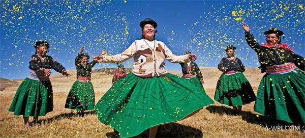 安第斯高原的女性迎风唱歌跳舞,表现出她们与土地等自然资源的重要联系。